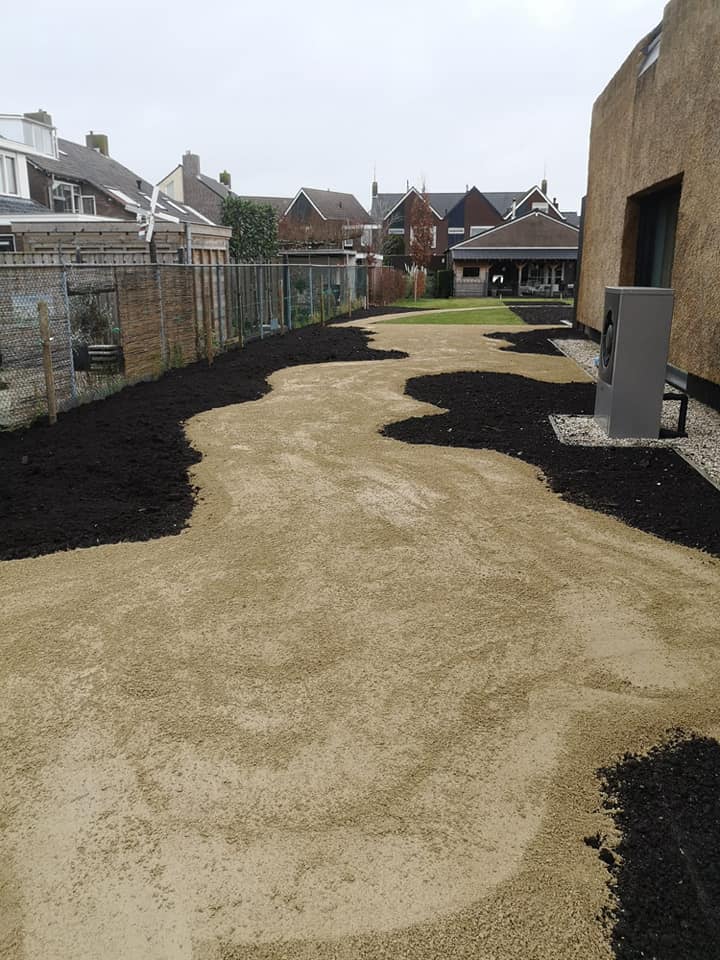 Daarna zorgen wij ervoor dat de juiste grondstoffen op de juiste plek komen. Zo leggen we repac onder de oprit, zand onder het straatwerk, brengen we rijke aarde aan in de borders en gebruiken we speciale gazongrond onder het gazon. Dankzij deze zorgvuldige aanpak krijgt alles in je tuin de optimale omstandigheden om te groeien, bloeien en gezond te blijven. Elk detail, van de samenstelling van de grond tot de juiste verdichting, heeft invloed op het uiteindelijke resultaat.